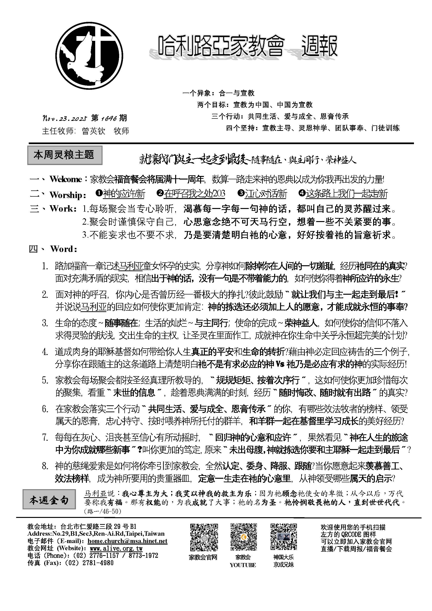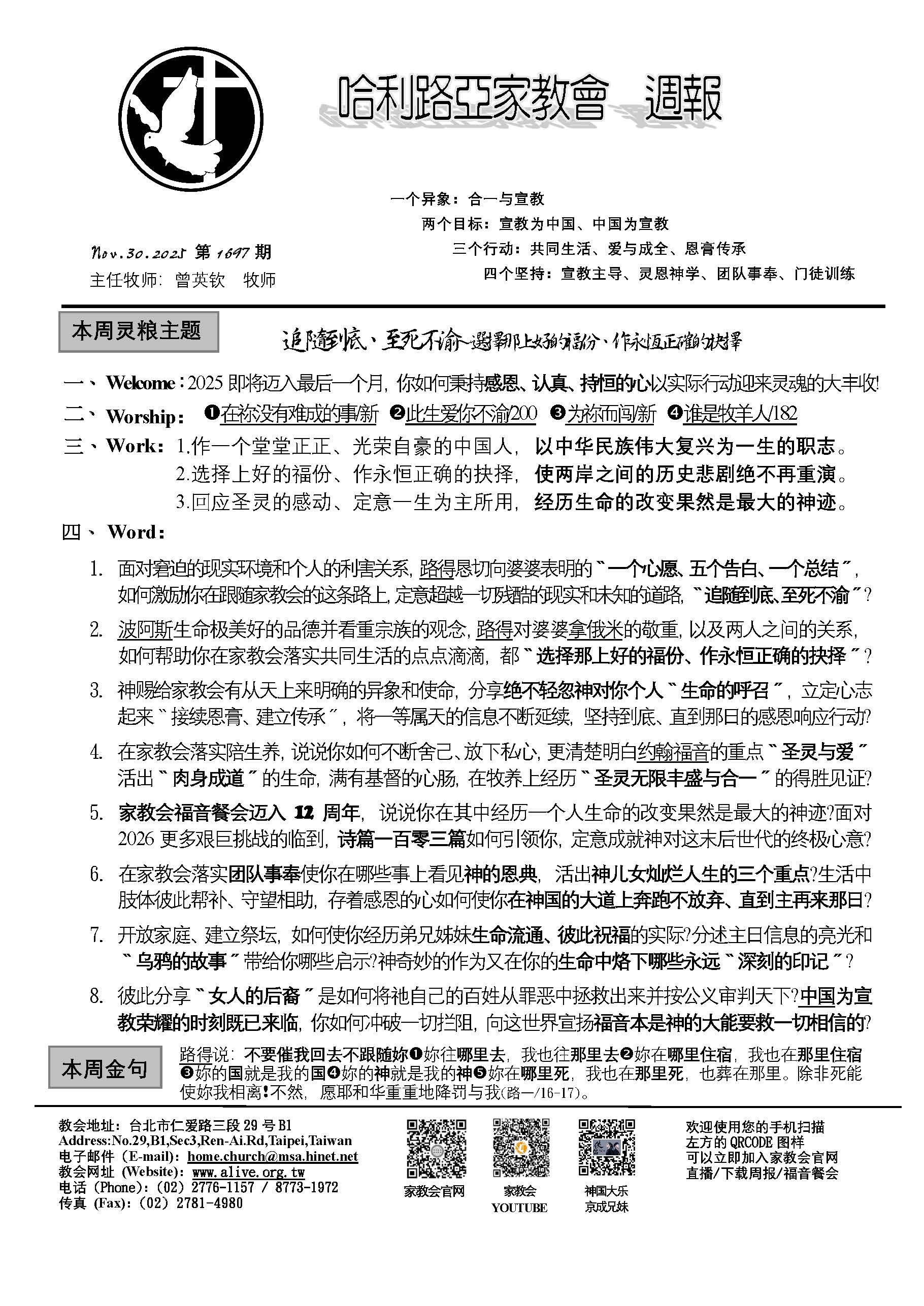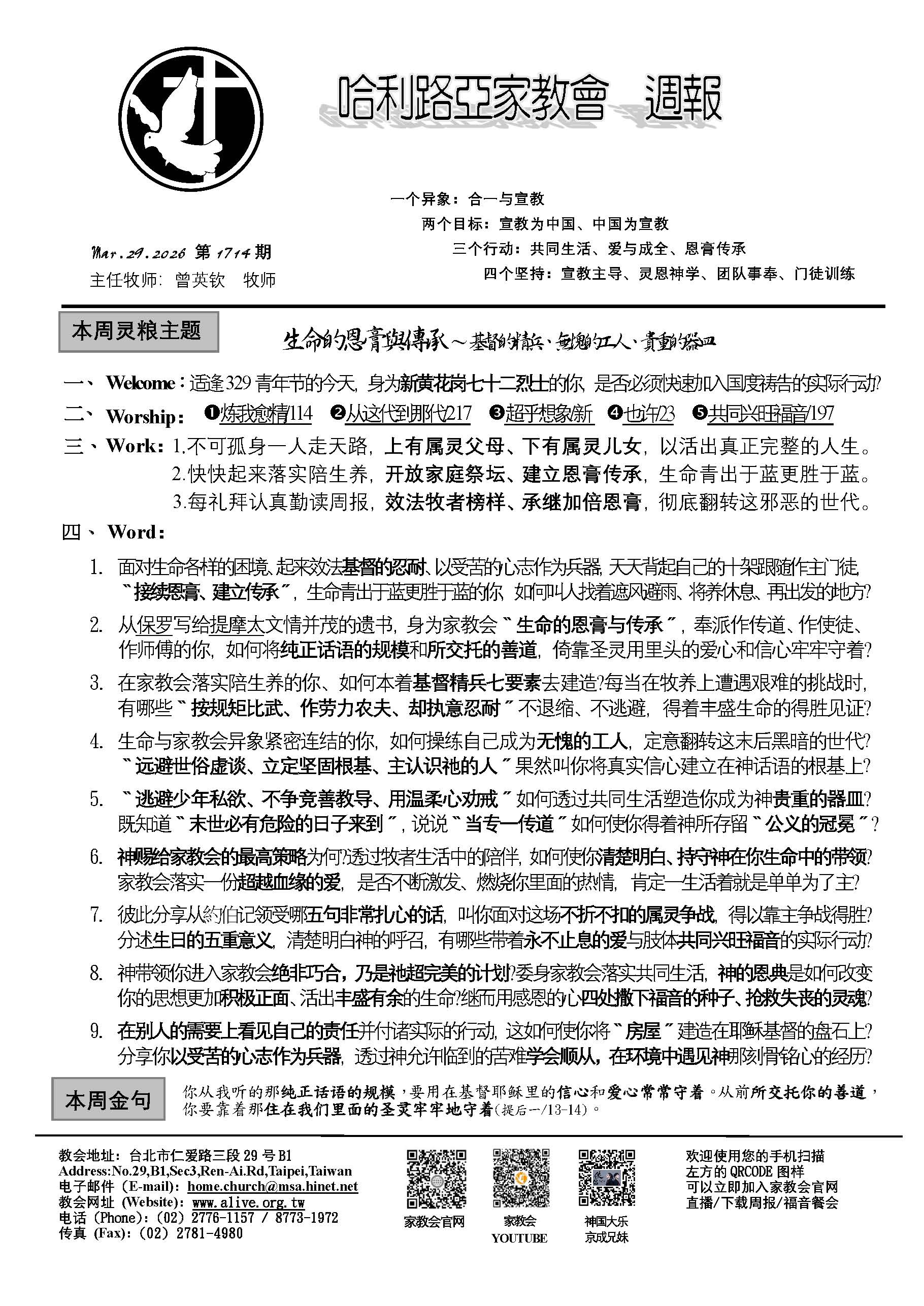您的位置在:哈利路亞家教會 > 文字出版 > 週報下載