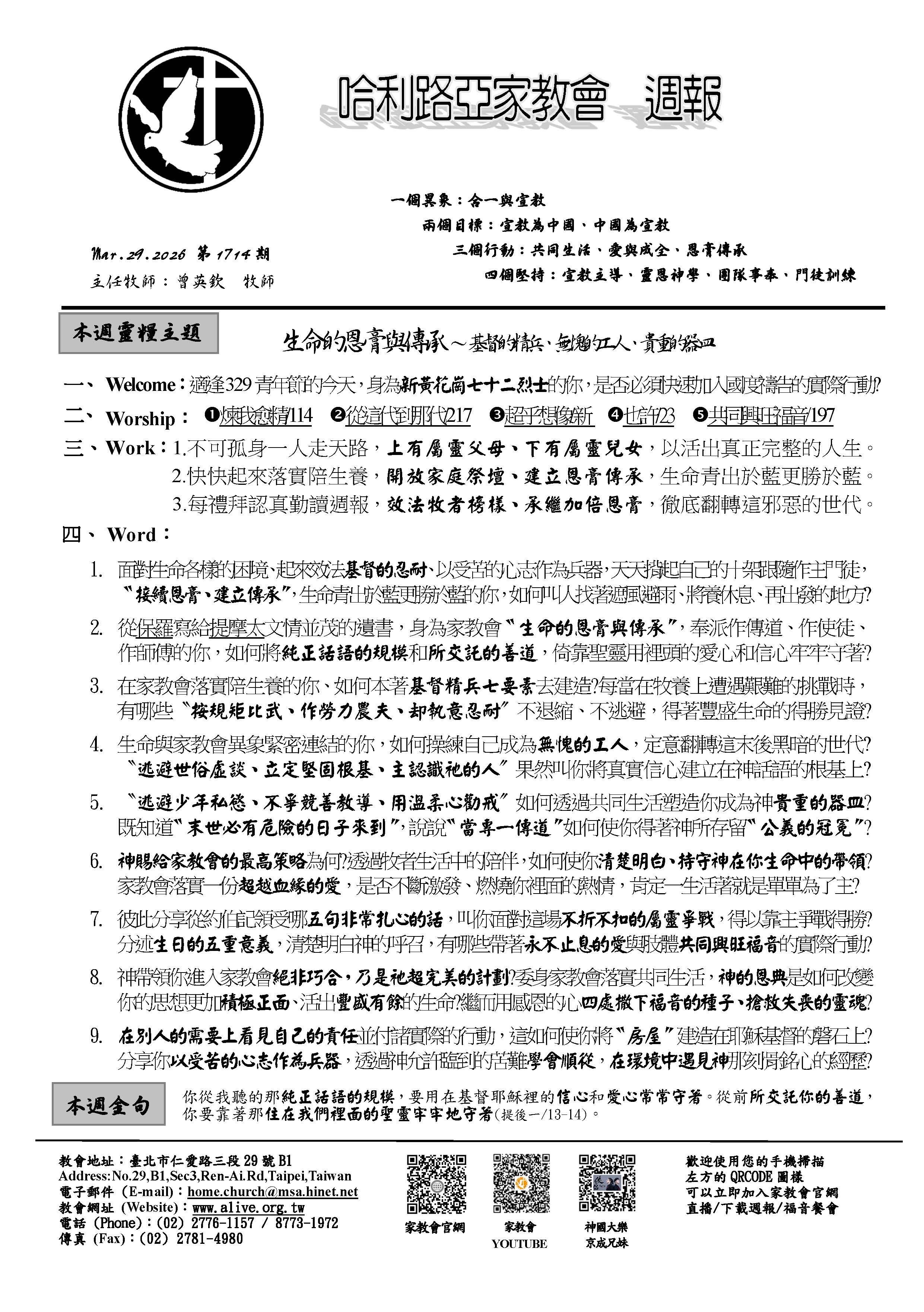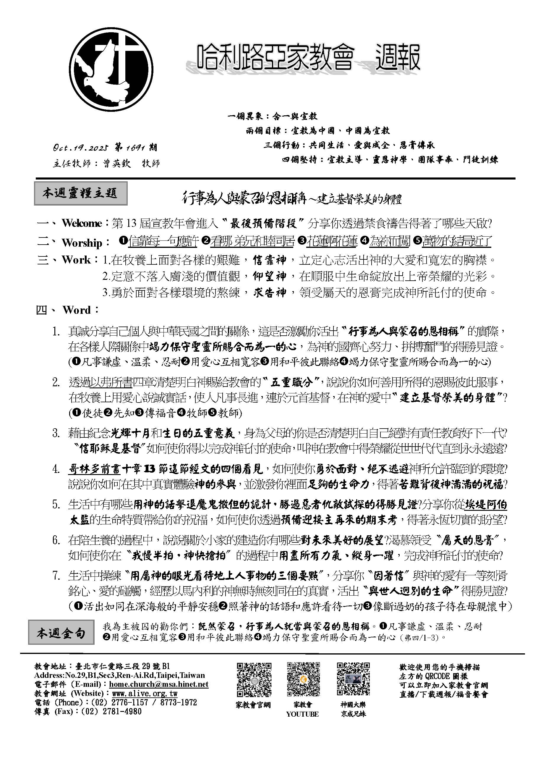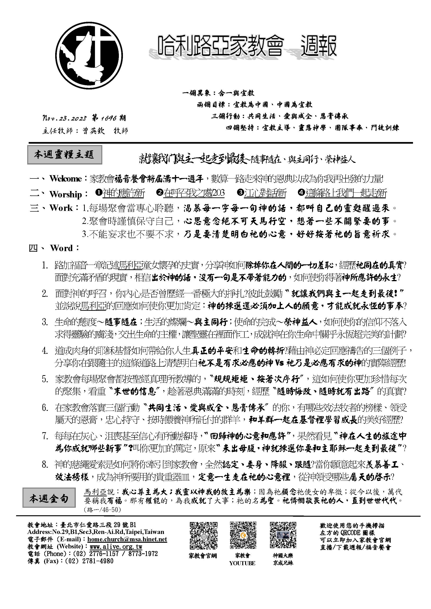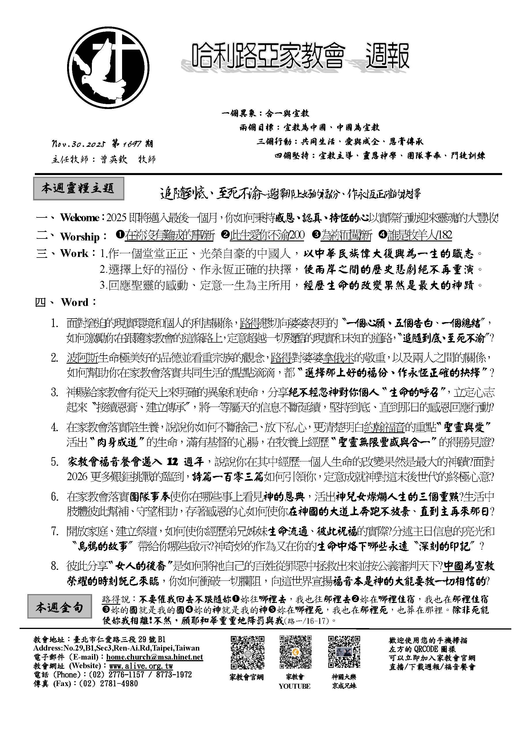 您的位置在:哈利路亞家教會 > 文字出版 > 週報下載
