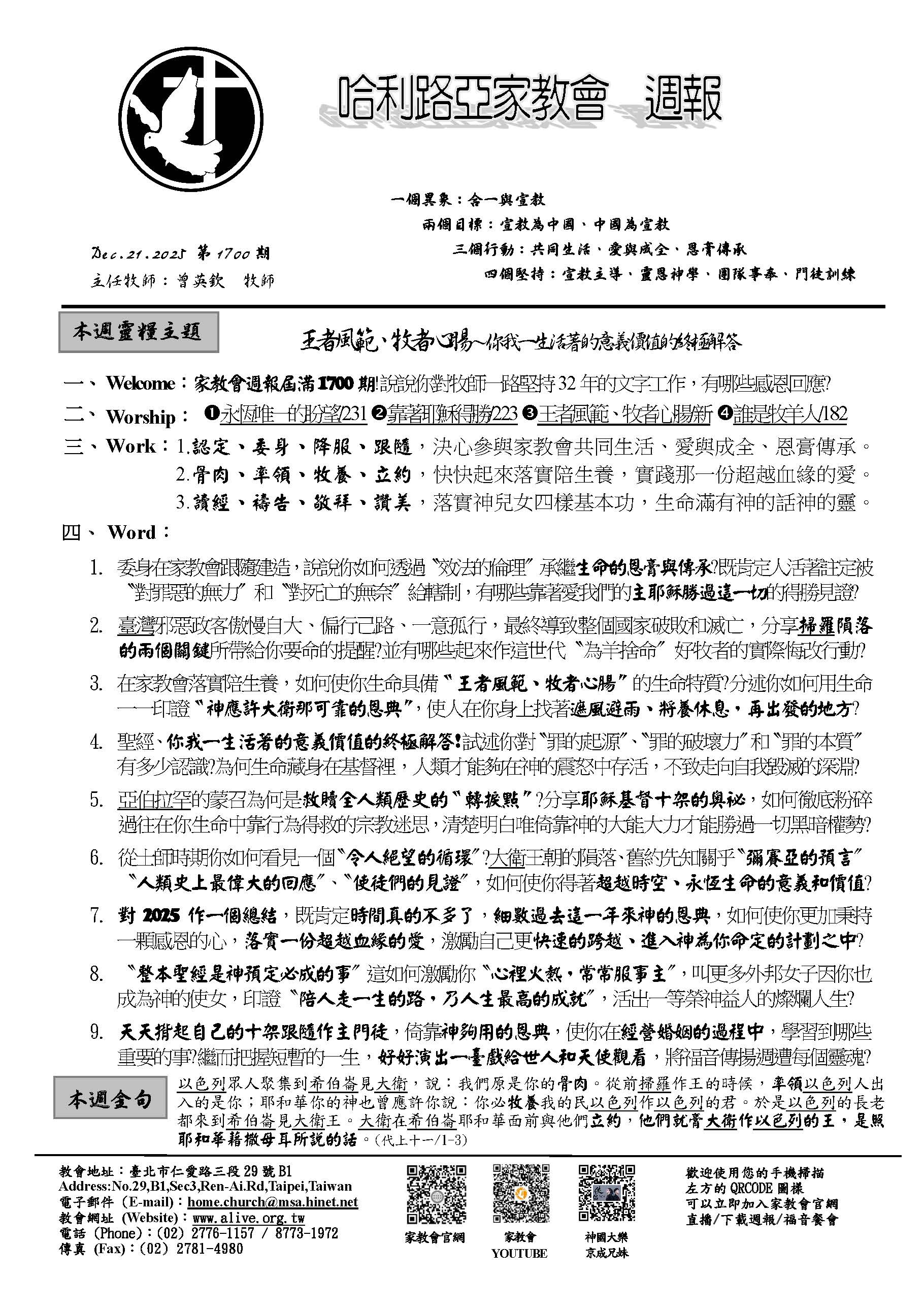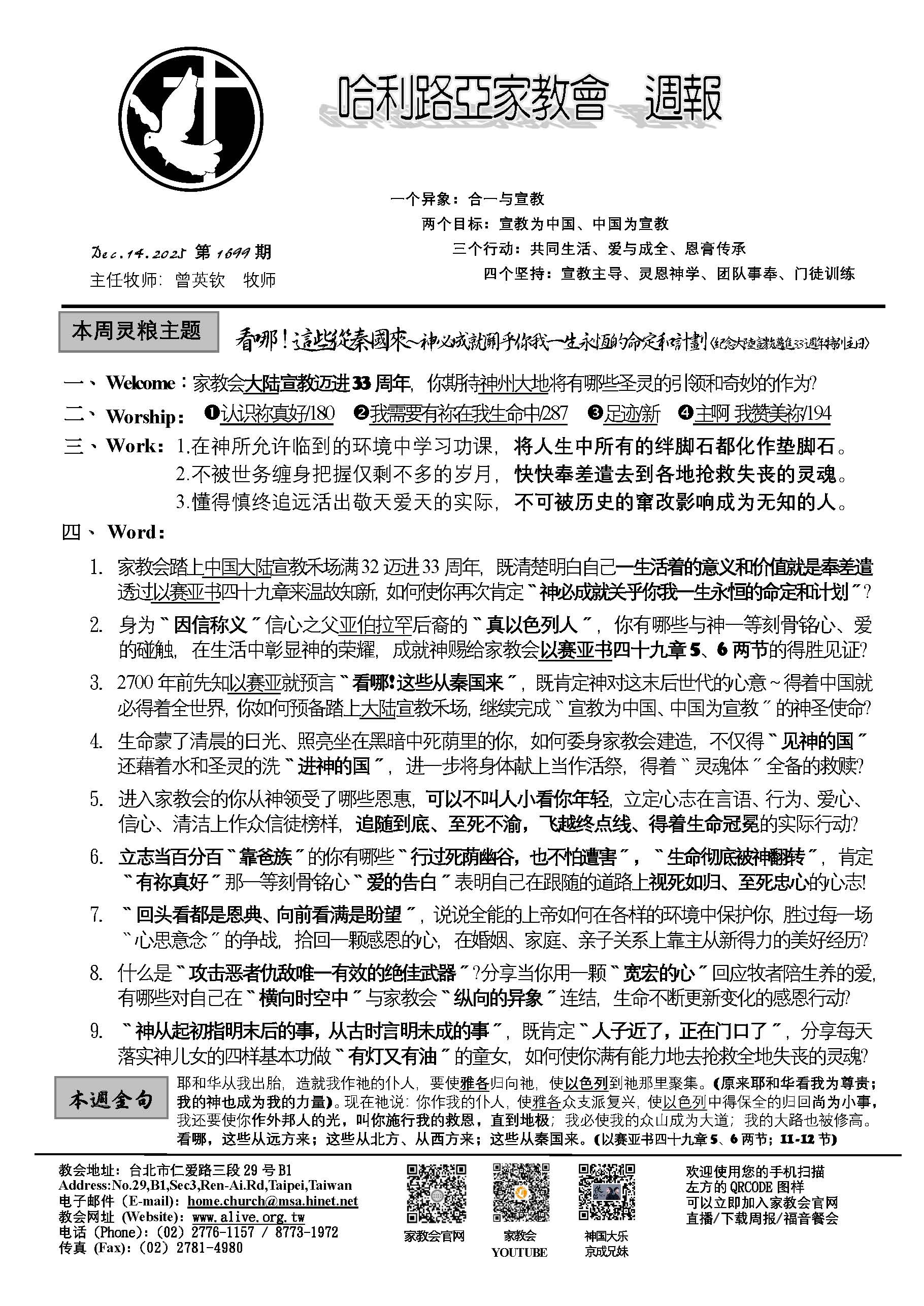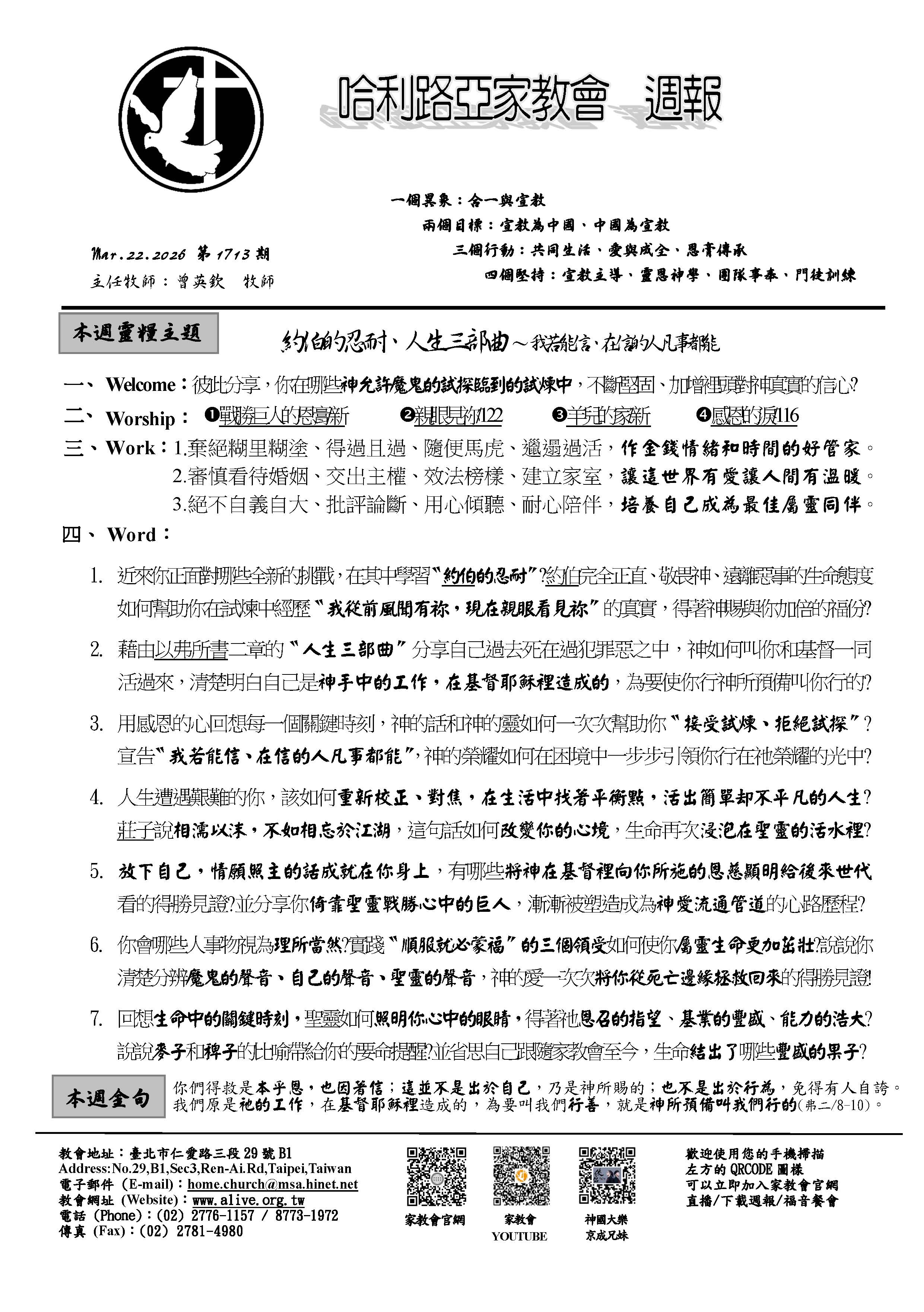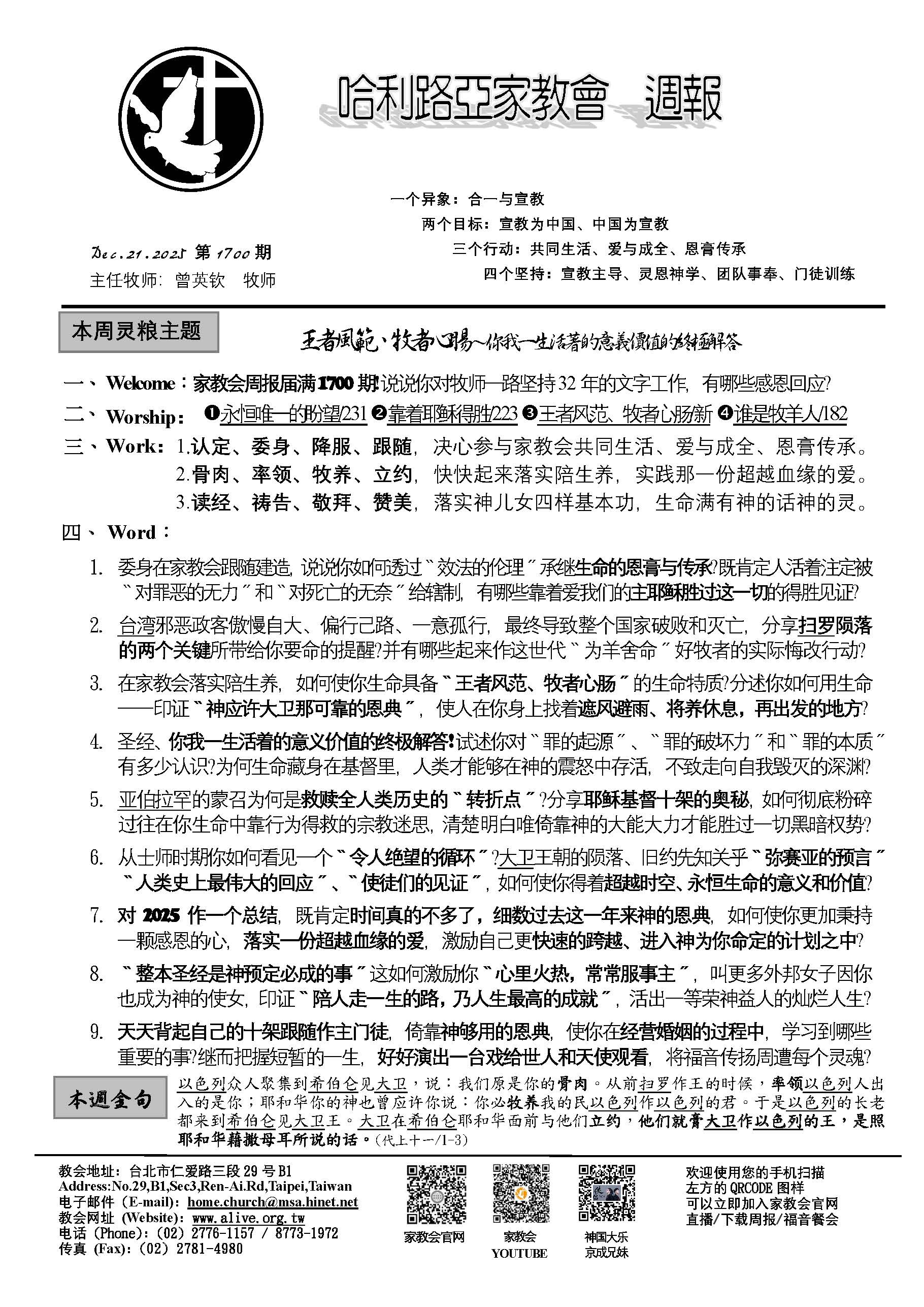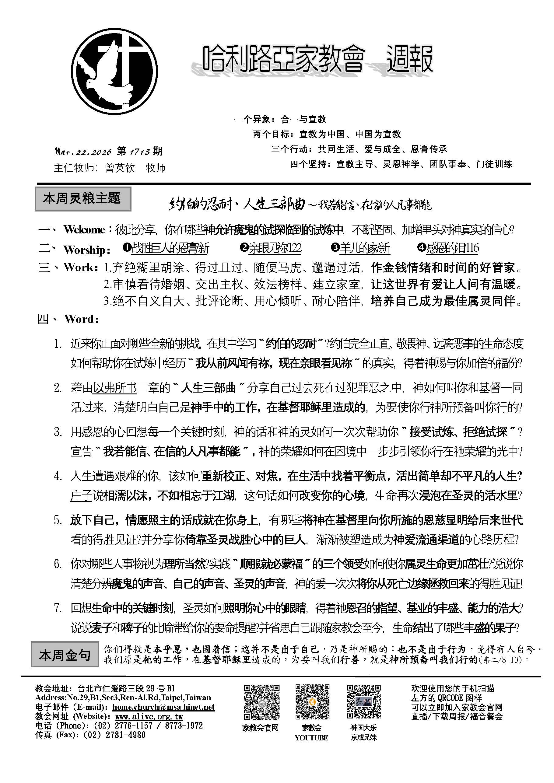 您的位置在:哈利路亞家教會 > 文字出版 > 週報下載